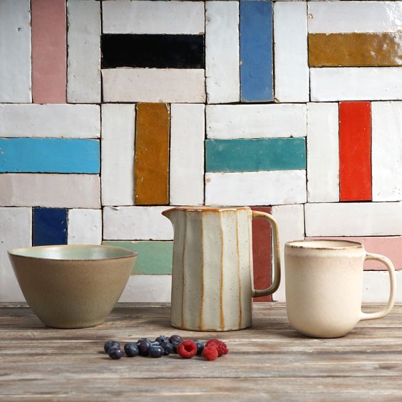Também podemos citar acima os padrões coloridos – não há uma rígida simetria nos formatos: a beleza consiste justamente nessa composição imperfeita, levemente irregular e que mistura tons vibrantes e paginações versáteis.
