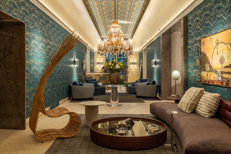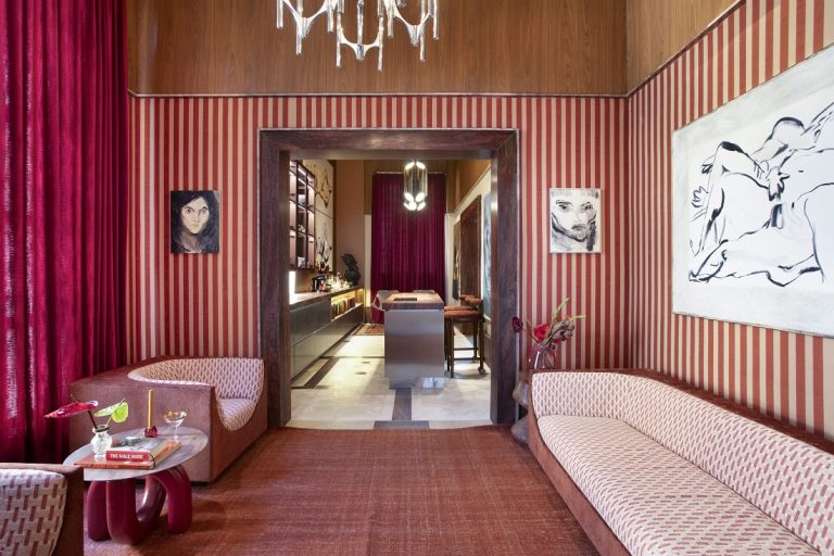 Ambiente dos arquitetos André Bastos e Pedro Luiz de Marqui, na CASACOR SP, é marcado por luxo e contrastes cênicos.