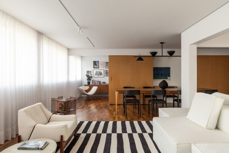 Reforma unificou ambientes, explorou a iluminação natural e a ventilação cruzada e garantiu as sensações de amplitude e bem-estar desejadas pelos moradores Assim que fechou a compra deste imóvel de 800 m², a nova moradora, que já havia realizado ouras reformas por conta própria, entendeu que seria melhor contar com um especialista para economizar tempo e alcançar o resultado desejado para a casa dos sonhos. Ao entrar em contato com o escritório da arquiteta Livia Quintella, ela solicitou um projeto com personalidade e muita amplitude, com quartos e banheiros grandes. Para isso, Livia precisou reformular todo o espaço interno da casa. Na hora da medição, Livia conta que já foi tendo ideias de como os espaços seriam modificados: paredes a serem derrubadas, unificação de ambientes, cores e texturas que trariam a sensação de amplitude e bem-estar desejados pela cliente. “A necessidade de uma casa com mais iluminação e ventilação natural foi o norte do projeto”,explica Livia. Para isso, amplas janelas e portas de vidro ganham destaque na fachada, conferindo iluminação, ventilação e amplitude, já que cria uma conexão visual entre as áreas interna e externa. A paleta de cores recebe tons terrosos no exterior, com destaque para o uso de