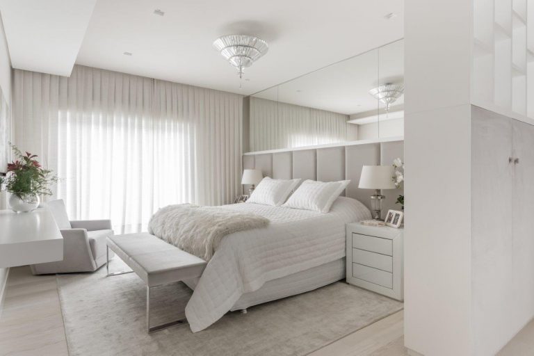 Neutro e clean, o branco é um clássico atemporal. Quando bem utilizada, a cor pode dar charme e deixar os espaços extremamente elegantes. Confira 5 ambientes totalmente brancos e inspire-se! Apostando num conceito contemporâneo e monocromático, os profissionais do escritório Valliatti & Patrão criaram essa suíte aconchegante e sofisticada. A marcenaria especial é assinada pelos arquitetos e possui portas revestidas com veludo. Destaque para o piso de carvalho branco. Revestido num mix de mármore piguês e porcelanato que reproduz o mármore, esse banheiro assinado pelo escritório Gam Arquitetos é perfeito para relaxar após a agitação do dia a dia. Com área da banheira e do chuveiro separadas, os tons claros ressaltam ainda mais a sensação de tranquilidade. Sofisticado e acolhedor, esse hall assinado pelas designers Ana Paula Cunha e Grace de Kelly, da Angra Design, é marcado pela cor branca presente em quase todo o espaço. O tom ressalta os arranjos e valorizara a Wall Art de Giuliano Martinuzzo. A cliente da arquiteta Simone Saccab fazia questão de uma cozinha totalmente branca e clean. Para dar um toque contemporâneo à área, a profissional optou por uma iluminação de trilho e pela marcenaria com puxadores ocultos. As texturas